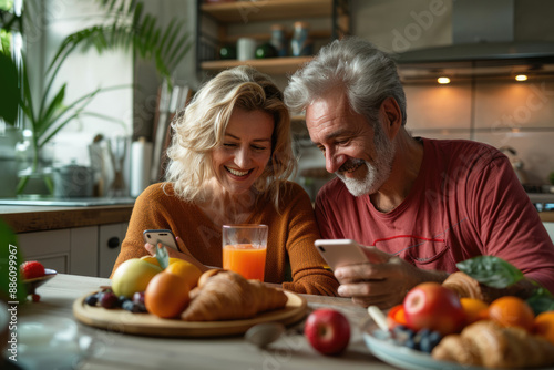 person, couple, home, kitchen, happy, woman, mobile, phone, smartphone, man, breakfast, young, leisure, lifestyle, indoor, photo, caucasian, family, female, mobile phone, morning, technology, food, table, connection, husband, together, wife, love, male, smiling, communication, adult, house, interior, cook, attractive, eating, girl, meal, bonding, cyberspace, guy, laptop, sharing, showing, togetherness, using, vegetable