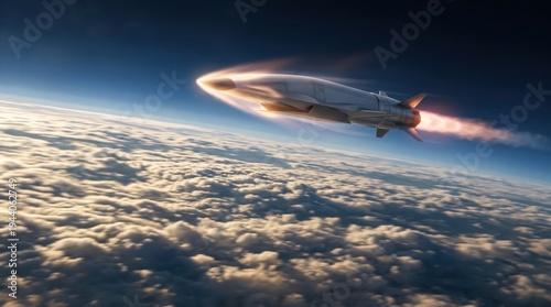 Hypersonic missile streaks through Earths upper atmosphere above expansive cloud layers