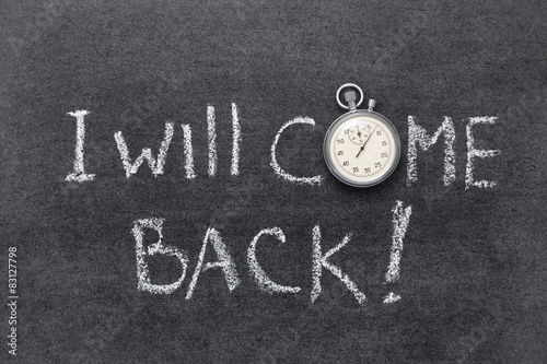 will, arriving, back, return, phrase, handwritten, confidence, motivation, text, concept, blackboard, blackboard, message, white, black, vintage, precise, stopwatch, second, clock, clock dial, opportunity, leaves, notice, promise