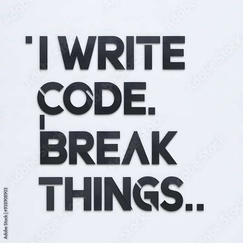 I Write Code, I Break Things – Techy Monospace Font T-Shirt Design for Programmers with a Comic Twist.