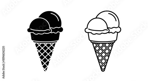 ice cream, cone, design, black-and-white, illustration, vector, graphic, icon, minimalist, simple, food, sweet, dessert, art, decorative, classic