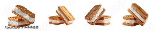 Ice cream sandwich with chocolate wafers isolated on transparent background