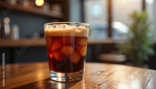 iced coffee, hot drink, shop, cafes, drink, beverage, espresso, red eye, ice cube, rustic, wood, table, interior, warm, inviting, caffeine, energy, chilled, cool, refreshing, tasty, delicious, break, relax, enjoying, sip, modern, minimalist, stylish, trendy, epicure, aesthetic, urban, lifestyle, brown, black