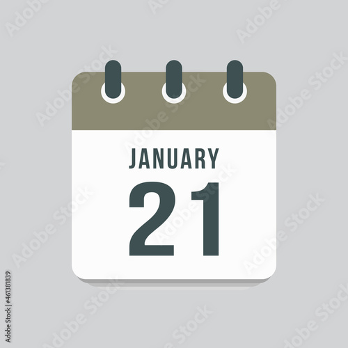 Icon day date 21 January, template calendar page