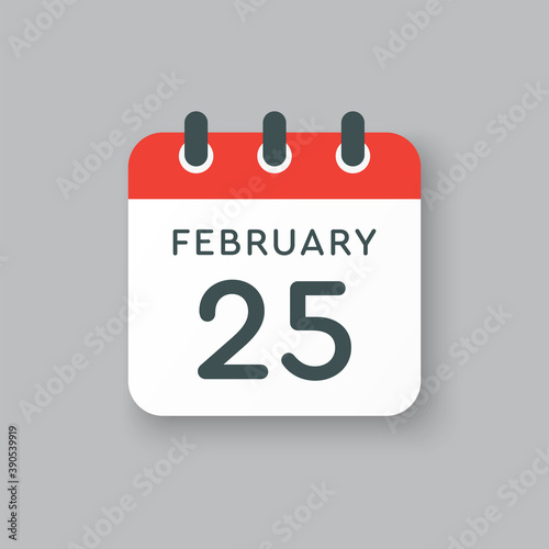 Icon day date 25 February, template calendar page