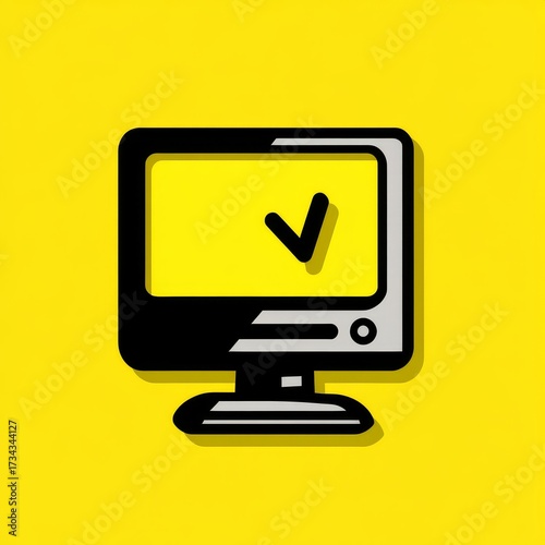 background, communication, computer, desktop, device, digital, display, electronic, equipment, hardware, symbol, yellow, icon, signs, illustration, shadow, vector, monitor, yellow background
