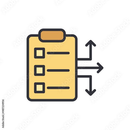 clipboard, checklist, workflow, task, management, priority, option, planning, project, icon, schedule, process, document, assignment, business, control, strategy, organise, list, reminder, test, report, form, job, information, symbol, graphic, direction, arrow, mark, note, element, outline, yellow, office, design, style, simple, modern, solution, route, choice, guide