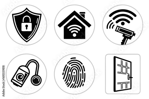 Icons representing home security, digital access, and protection