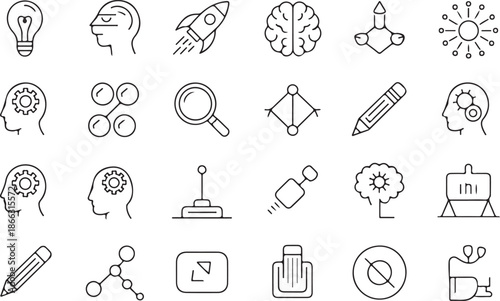 idea, creativity, innovation, brain, thinking, concept, icon, symbol, mind, thought, inspiration, insight, solution, strategy, design, vignetting, crayons, launch, rocket, progress, growth, development, network, connection, teamwork, collaboration, analysis, datum, graph, chart, diagram, flowchart, process, workflow, research, discovery, search, magnifier, cognition, intelligence, learning, education, meditation, mindfulness, sharpened, spark, light bulb, gear, decision