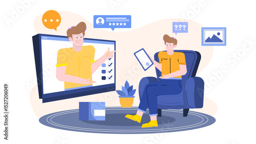 Ideal for representing remote work, virtual meetings, communication, telecommuting, teamwork, technology, business, online collaboration, video conferencing, and modern lifestyle.
