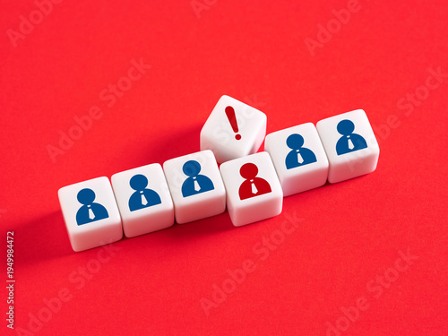 problem, employee, manpower, team, assessment, dismissal, discrimination, warning, identifying, alert, attention, risk, danger, hazard, security, management, human resources, hr, business, concept, icon, symbol, personnel, men at work, staff, recruitment, candidate, selection, evaluation, termination, crisis, mistake, bankruptcy, error, issue, people, social, red background, white, red, blue, abstract, metaphor, career, job
