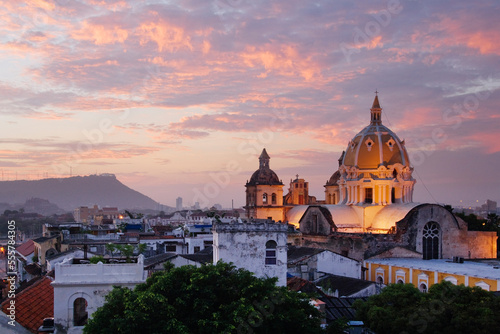 outdoors, sunset, twilight, sunrise, dawn, town, building, faith, christian, religious, landmark, morning, america, architecture, image, building, church, dome, city, latin, place, picture, photograph, colombia, colombian, tourist destination, south america, local landmark, building exterior, attraction, cloud, exterior, nobody, sky, attraction, travel, hill, color image, latin america, new day, latin america, cartagena, color photography