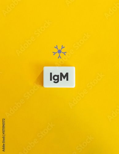 IgM Antibody Type Banner and Concept Image. Text on Block Letter Tile on Yellow Background. Minimal Aesthetic.