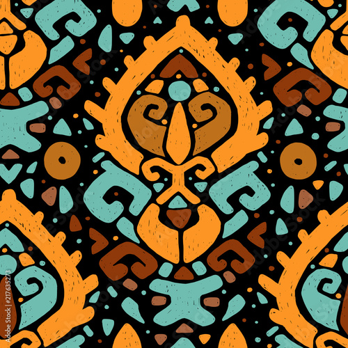 Ikat ornament. Tribal pattern in Aztec style. Hand Drawn folklore seamless pattern. Can be used for wallpaper, website background, textile, phone case print