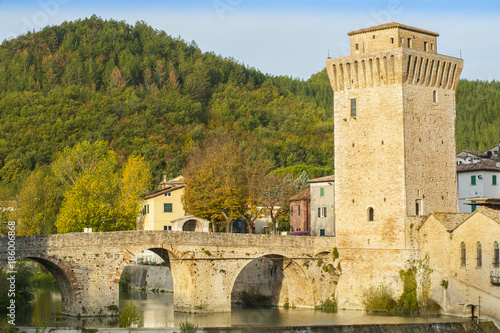 paper mill, waterfall, tower, pesaro, urbino, chimney, fisherman, mediaeval, tour tourism, italy, river
