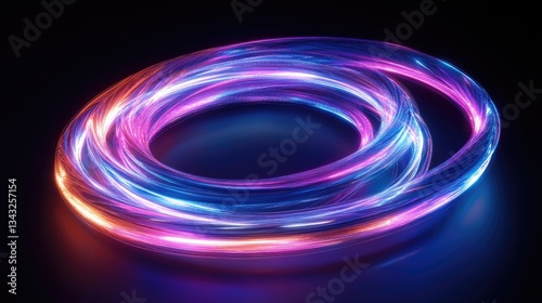 ring, circle, abstract, glow, light, neon, fiber, optical, energy, motion, curve, strand, line, bright, colourful, spectrum, blue, pink, purple, orange, dark, black, background, futuristic, modern, design, digital, render, illustration, radiant, shine, effect, iridescent, swirl, loop, smooth, technology, connection, network, flow, dynamic, spiral, pattern, illuminated, aethereal, vibrant, glowing, stream
