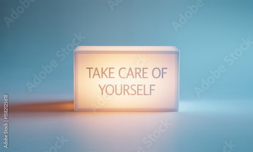 glow, light, message, well-being, signs, illuminated, text, health, reminder, positivity, motivation, encouraging, care, yourself, box, cube, bright, background, blue, soft, sharpened, simple, mental, awareness, support, hope, kindness, compassion, mindfulness, relaxation, comfort, calmness, peace, serenity, calmness, encouragement, uplifting, inspiration, gentle, tenderness, nurturing, solace, refuge, safety, security, affirmation, positive