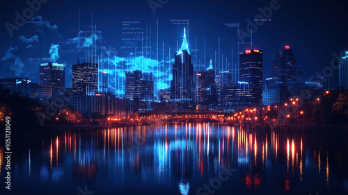 architecture, skyline, modern, urban, city, city landscape, water, light, building, night, skyscraper, vibrant, downtown, landscape, metropolis, sky, illuminated, futuristic, river, travel, dynamic, horizon, evening, dusk, scene, abstract, nightlife, technology, panorama, view, reflections, glow, illumination, digital, dark, bright, tour tourism, photo, scenic, illustration, night time, neon, tower, atmosphere, high-coloured, background