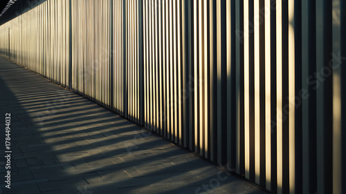 Illuminating architectural rhythm: Parallel bars cast shadows, creating an interplay of light and dark. Urban elegance is shown through pattern and linear elements.