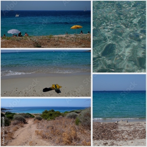 illustration, landscape, sea, corsica, water, beach, blue, colours, summer, vacation, bathing, diving, transparent, turquoise, clarity, blue skies, collage, boat, navigate, wave, island, summer