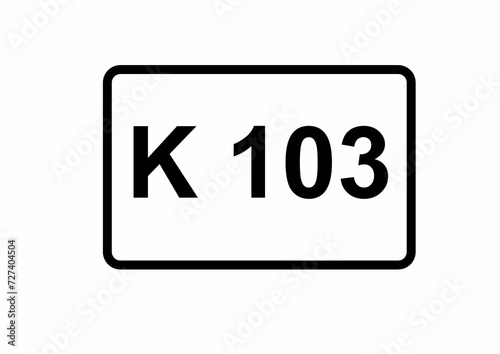 Illustration eines Kreisstraßenschildes der K 103 in Deutschland