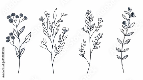 illustration of a branch of tree, hand drawn flowers