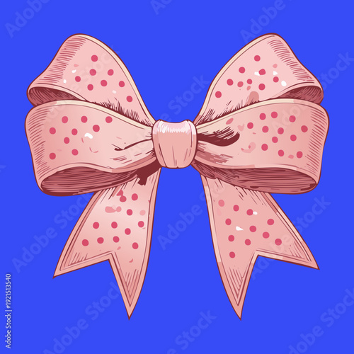 Illustration of a bright pink bow set against a bold blue square creating a striking contrast for modern graphic design projects
