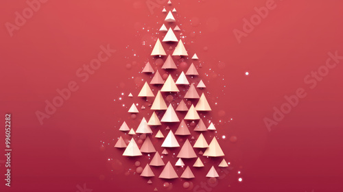 Illustration of a christmas tree with geometric shapes on a light maroon background