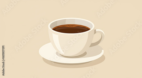 Illustration of a White Coffee Cup on a Saucer Perfect for Breakfast and Morning Rituals