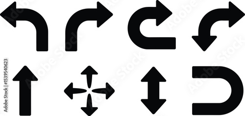 arrow, direction, navigation, symbol, signs, interface, web, design, graphic, element, shape, curve, point, move, pointing, guide, forward, backward, upward, downward, return, rotate, black, white, isolated, vector, icon, set, collection, flat, simple, basic, universal, choice, option, pointer, arrow