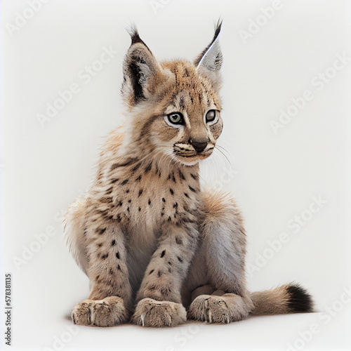 illustration of lynx cub on white background AI generated