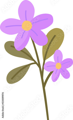 Illustration of Purple Flower with Leaves, Design Inspiration, Illustration, Vector, Object, Template