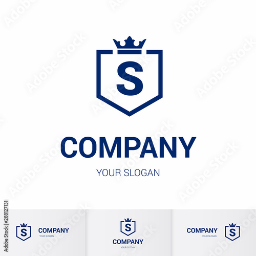 Illustration of Shield Badge-Shape with letter S in the Middle and Luxury Crown. Logo Icon Template for Web and Business Card, Letter Logo Template on White Background