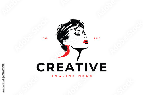 Illustration of women's hairstyle icon, logo with women's face. Vector beauty concept.