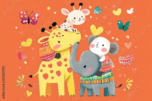 Illustration with elephant and other animals