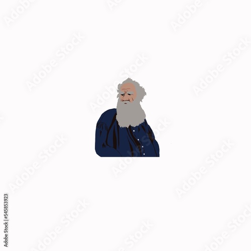 Illustration with men with beard. Russian writer Lev Tolstoy on white background. For books, paper, print, cards.