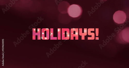 Image of holidays text with spot lights on black background