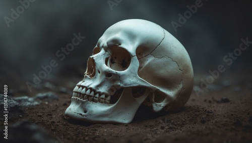 Image titled: "Image of a colored skull laid flat."