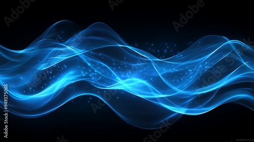 Immersive Blue Waves of Light Creating a Mystical Atmosphere in Digital Art
