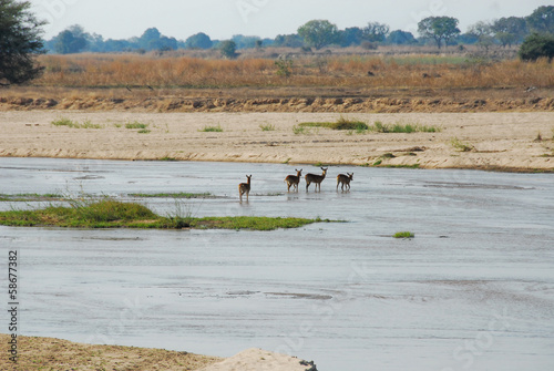 Impalas crossing Mwaleshi river (Zambia)