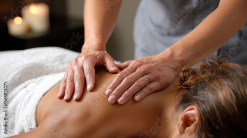 In a tranquil spa environment, skilled hands gently administer a professional back massage, promoting relaxation and wellness. The soothing touch enhances the overall experience of body care