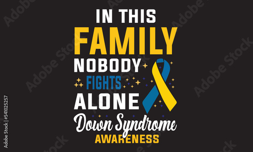 In This Family Nobody Fights Alone Down Syndrome Awareness T-Shirt Design