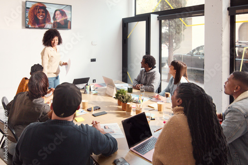 boss, brainstorm, business, collaboration, colleague, environment, inclusive, indoor, leadership, lifestyle, meeting, modern, office, planning, screen, smiling, startup, teamwork, technology