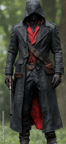 mystery, character, forest, gun, intrigue, nature, stylish, confident, attire, art, fantasy, adventure, dramatic, captivating, cinematic, powerful, menacing, atmospheric, striking, visual, detail, aesthetic, chic, modern, edgy, vibrant, compelling, allure, hero, shadow, highlight, bold, unique, design, wallpaper, background, phone, smartphone, theme