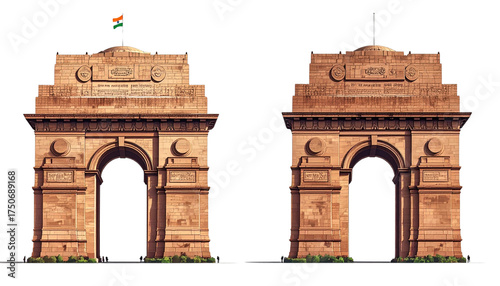 India Gate front view and side view isolated on transparent background