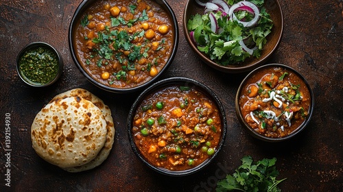 indian, food, dish, top, view, dark, brown, background