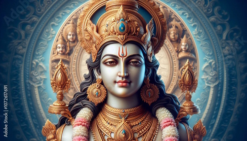 Indian Hindu god bhagwan vishnu or narayana, concept for Hindu religion festival Diwali, Dhanteras, New year