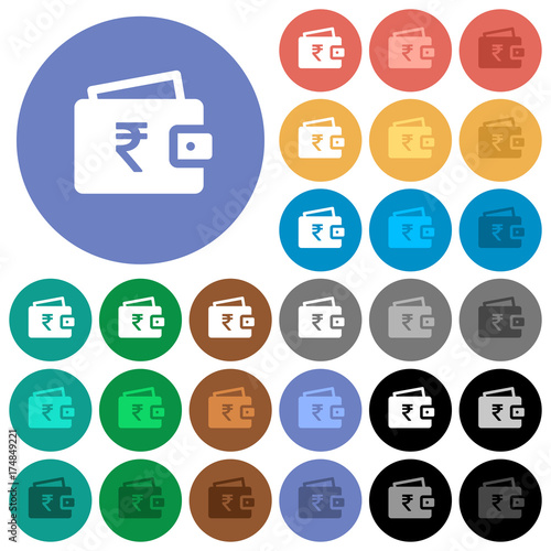Indian Rupee wallet round flat multi colored icons