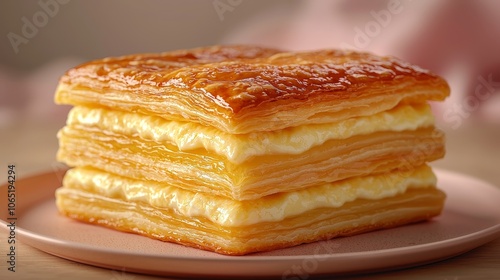 pastry, cream, dessert, layer, delicious, baking, culinary, epicure, treat, indulgence, sweetness, flaky, rich, texture, gold, presentation, receipe, snack, enjoyment, savour, artisan, confection, mouth-watering, homemade, life events, classic, plated, decadent
