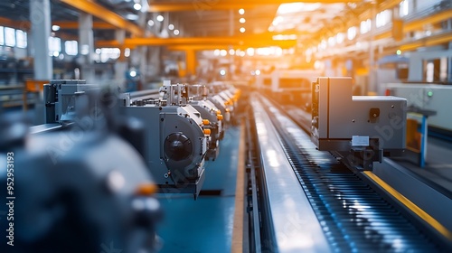 Industrial Assembly Line with Metal Parts and Automated Equipment